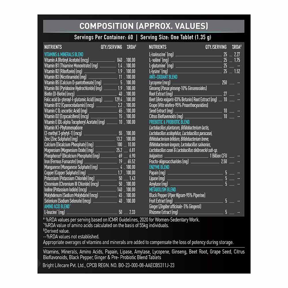 • 2. Everlasting Energy and Stamina: MB-Vite Daily Multivitamin is formulated with a combination of 6 super powerful blends of vitamins & minerals, amino acid, prebiotic & probiotic, enzyme, anti-oxidant and metabolism blend. Every single dose of this multivitamin gives you everlasting stamina and helps elevate your fitness